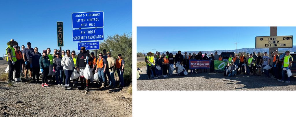 OFCU had 11 staff volunteer their time on Saturday, April 19th with AFSA to help clean up part of the Holloman Highway.