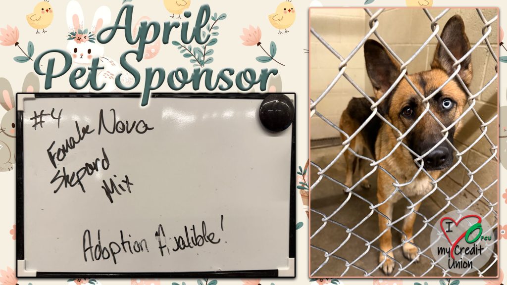 OFCU’s Sponsored Pet of the Month is Nova, a gentle and sweet Female Shepherd Mix! OFCU has put $30.00 towards her adoption fees. For more information on how to make her or another loving pet part of your family contact the Alamogordo Animal Control Center today!